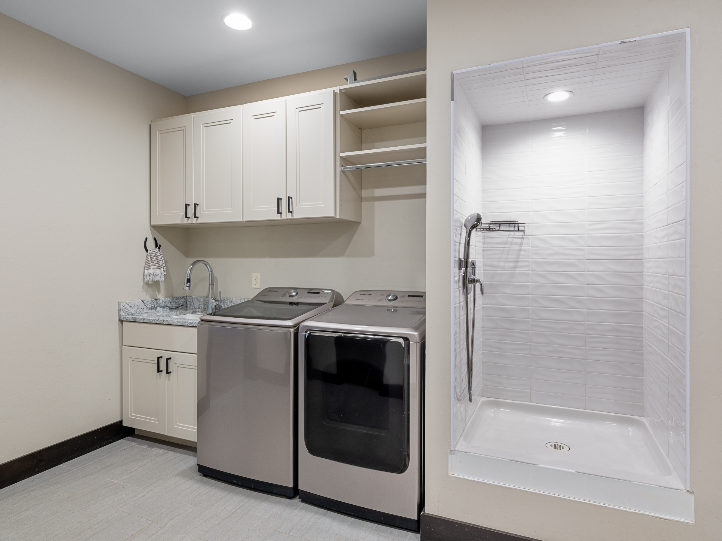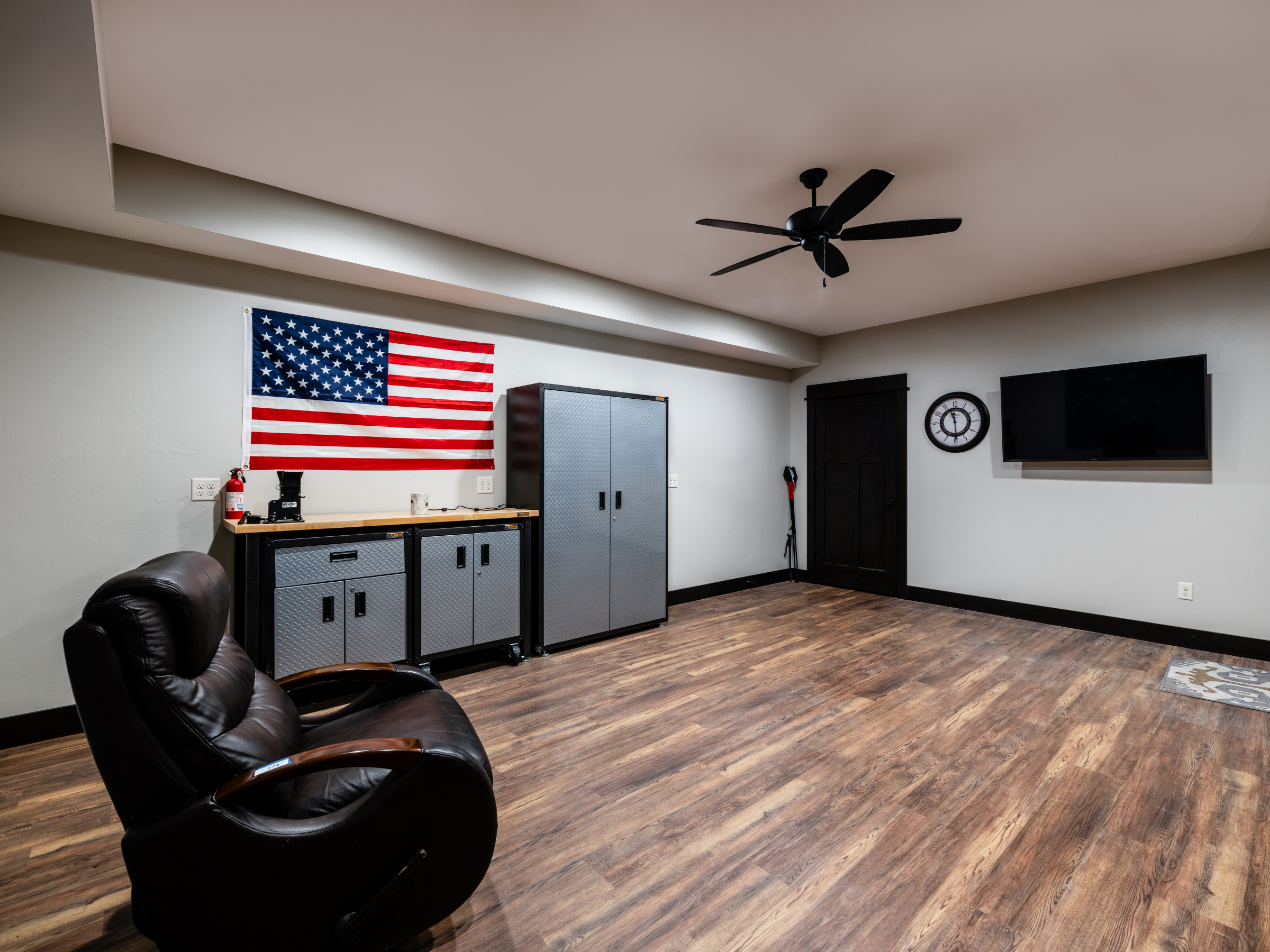 The expansive 1,818-square-foot, four-bay five-car attached garage features radiant floor heat with a dedicated HRV system, ceiling fans, a channel floor drain, and hot and cold-water spigots. Enjoy the security of a vault lock-off safe/storage room with LVP flooring, dedicated A/C split for ventilation and extra room for hobbies or conditioned storage.