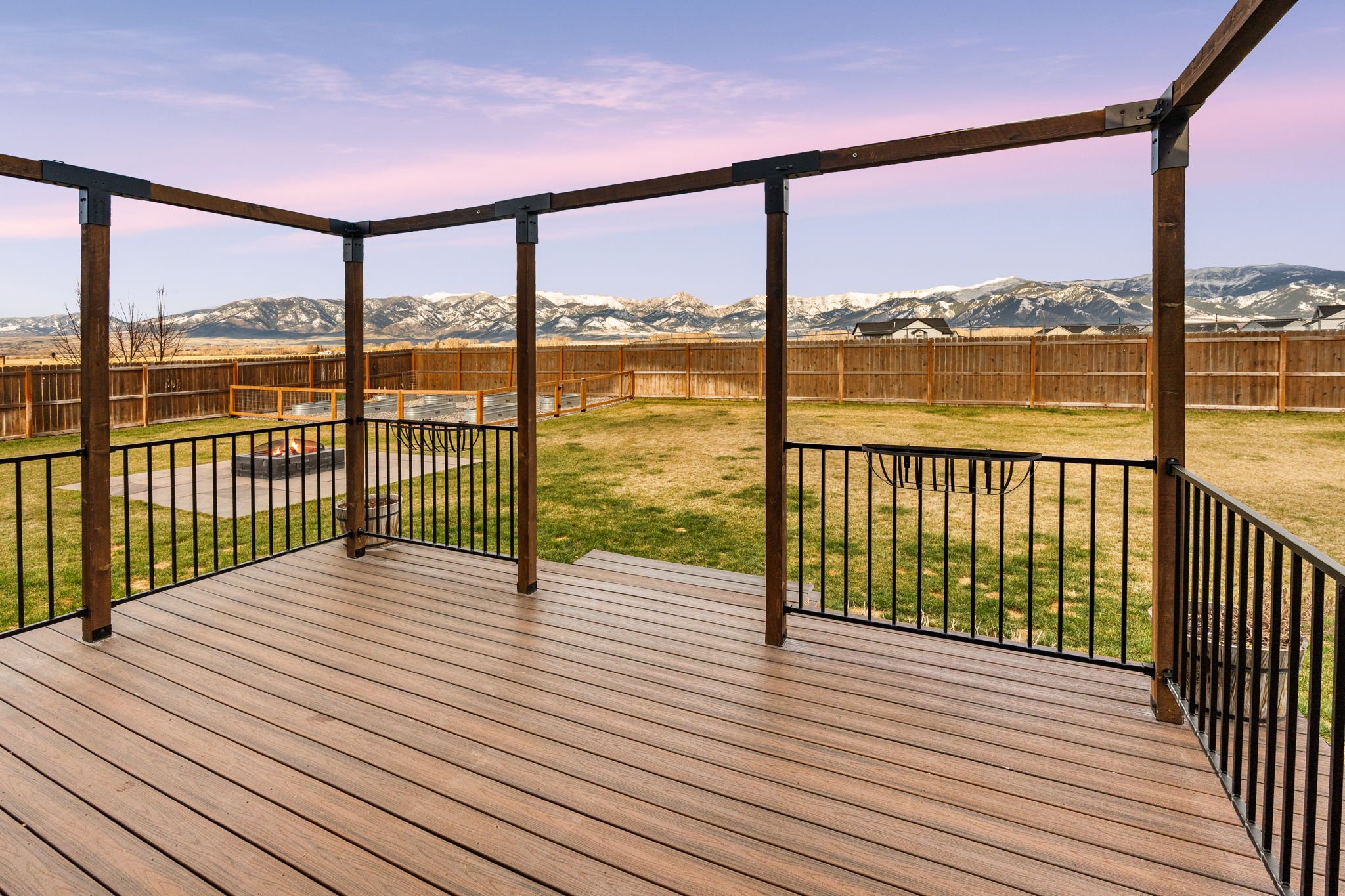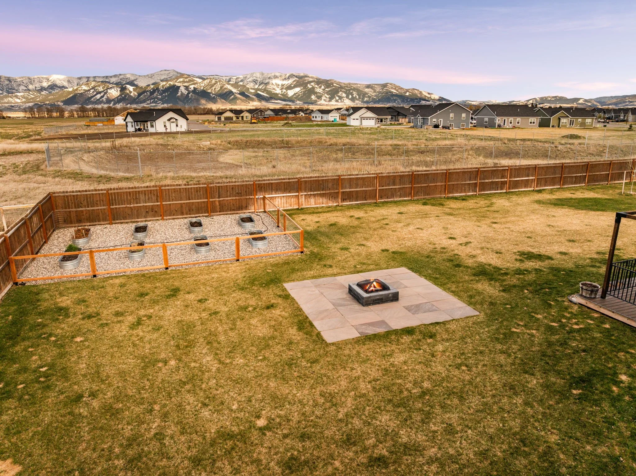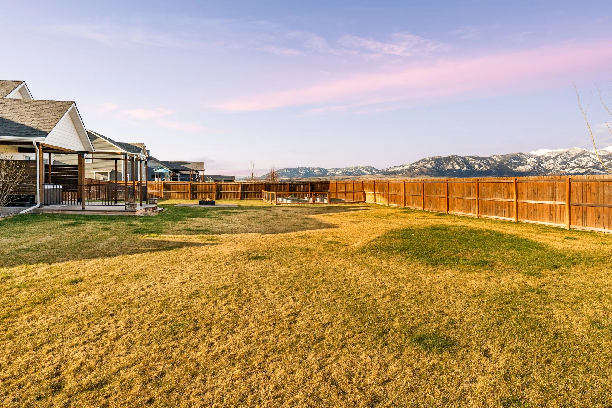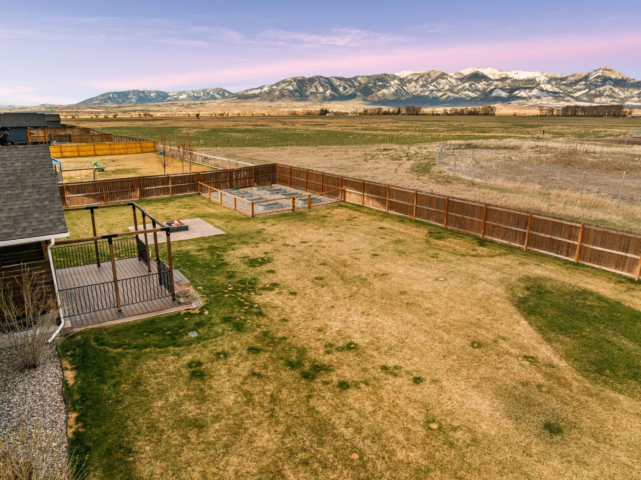 This exceptional Ryen Glenn home is perfectly situated to capture the sweeping and protected panoramic Bridger Mountain views. Backing to dedicated community open space, the home is brimming with curb appeal, situated on almost a half-acre of meticulously landscaped grounds with lush lawn, and a fully fenced backyard with hardscaped raised garden area, hot tub and firepit.