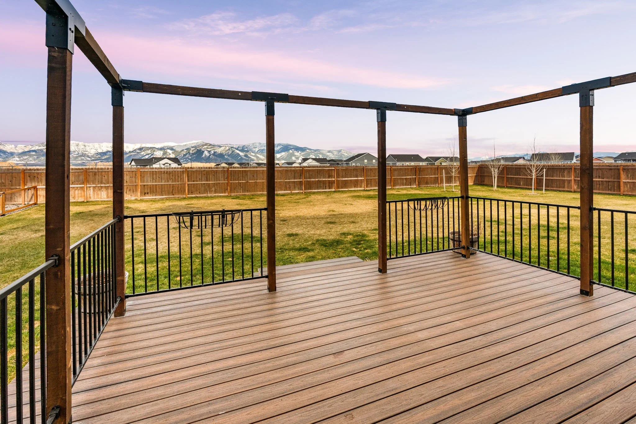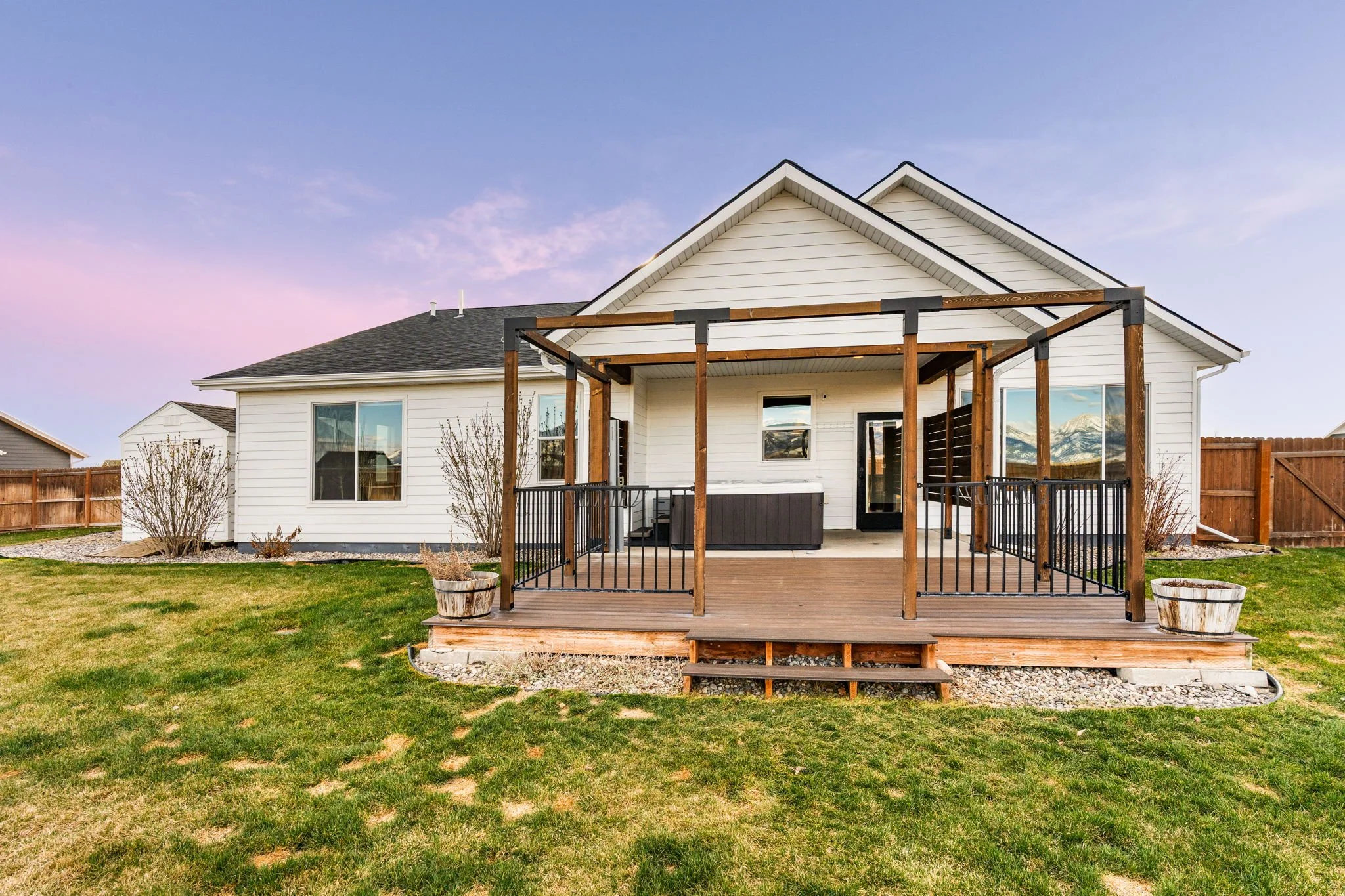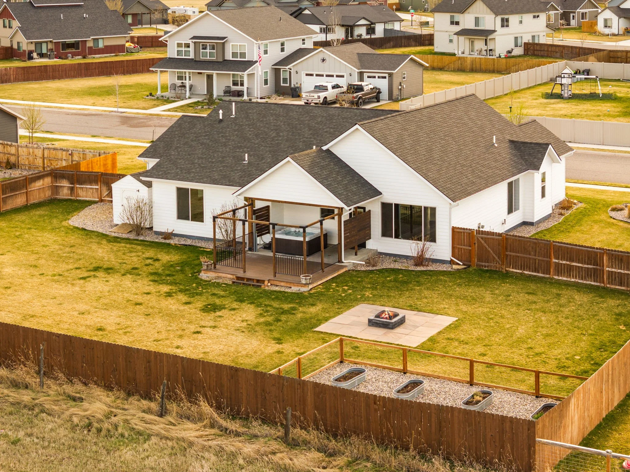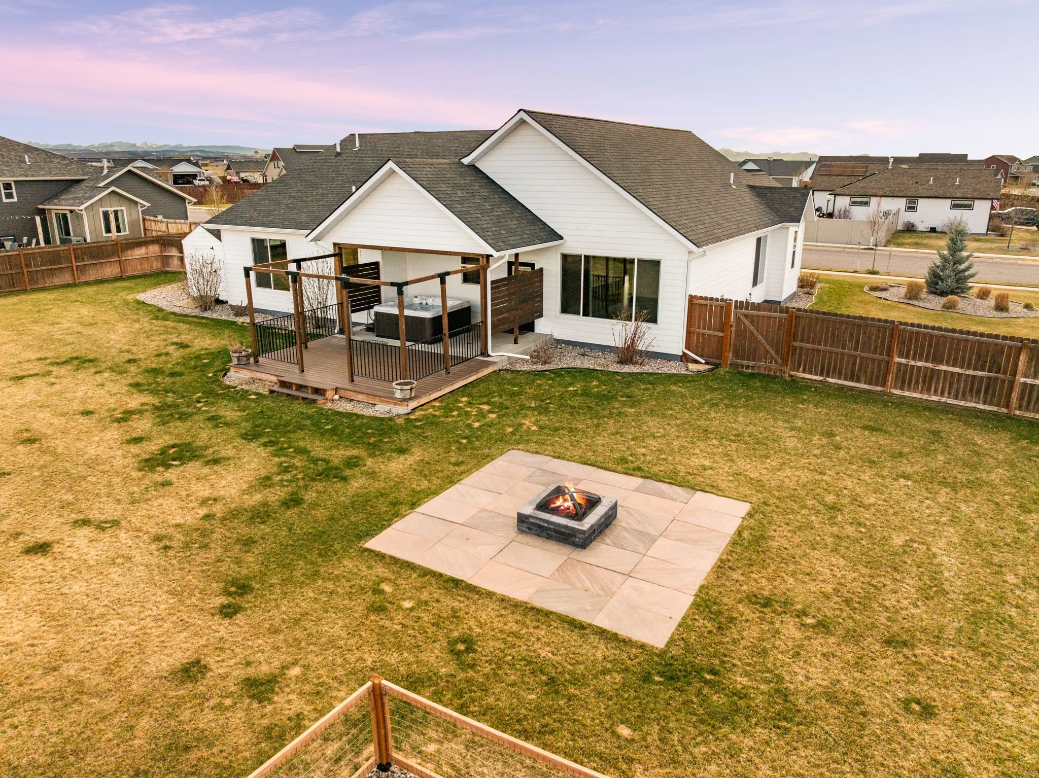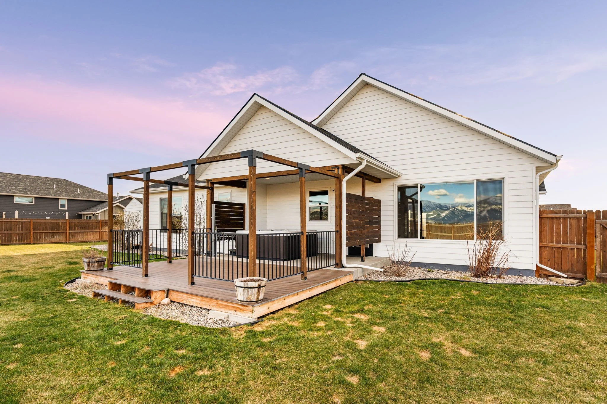 This exceptional Ryen Glenn home is perfectly situated to capture the sweeping and protected panoramic Bridger Mountain views. Backing to dedicated community open space, the home is brimming with curb appeal, situated on almost a half-acre of meticulously landscaped grounds with lush lawn, and a fully fenced backyard with hardscaped raised garden area, hot tub and firepit.