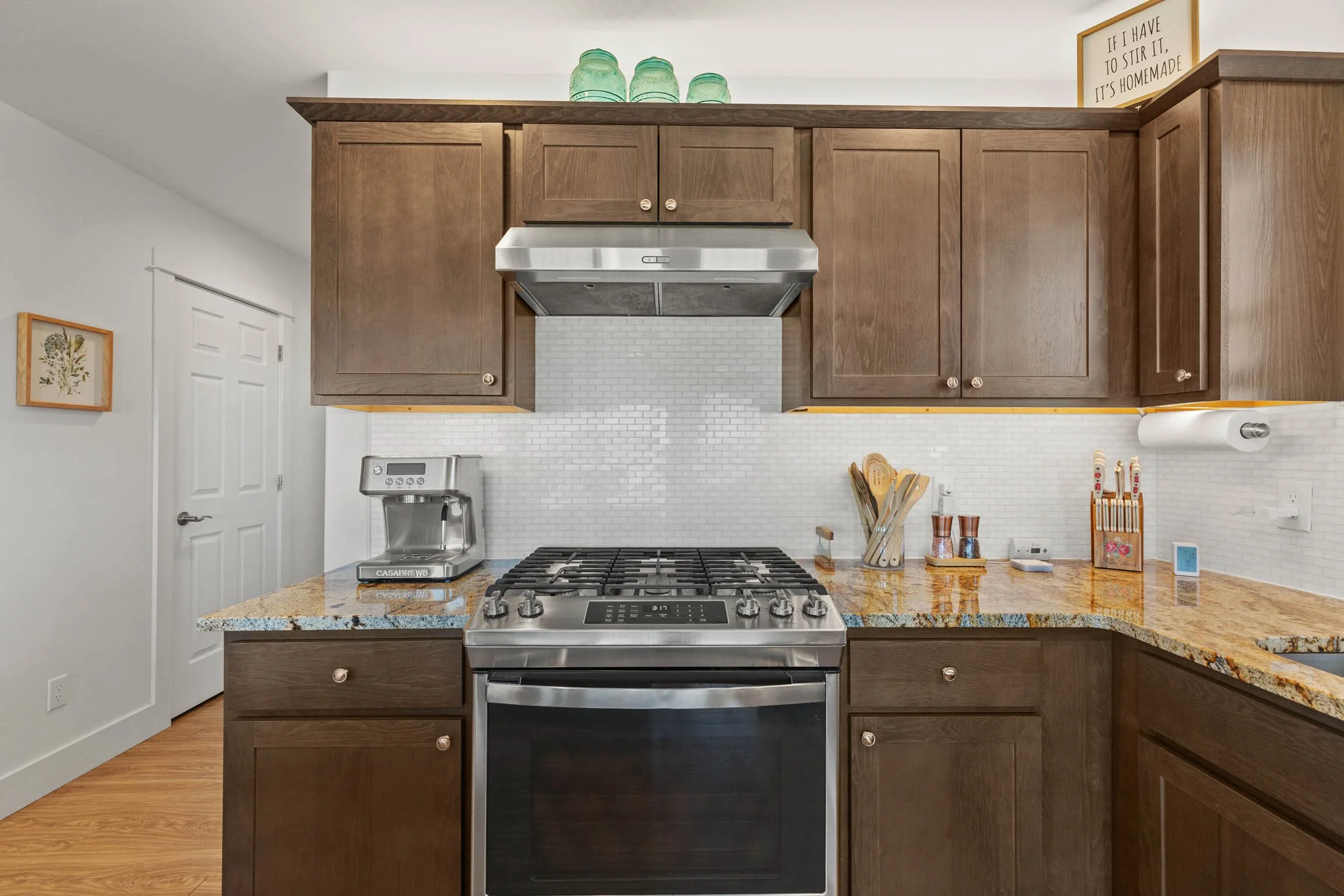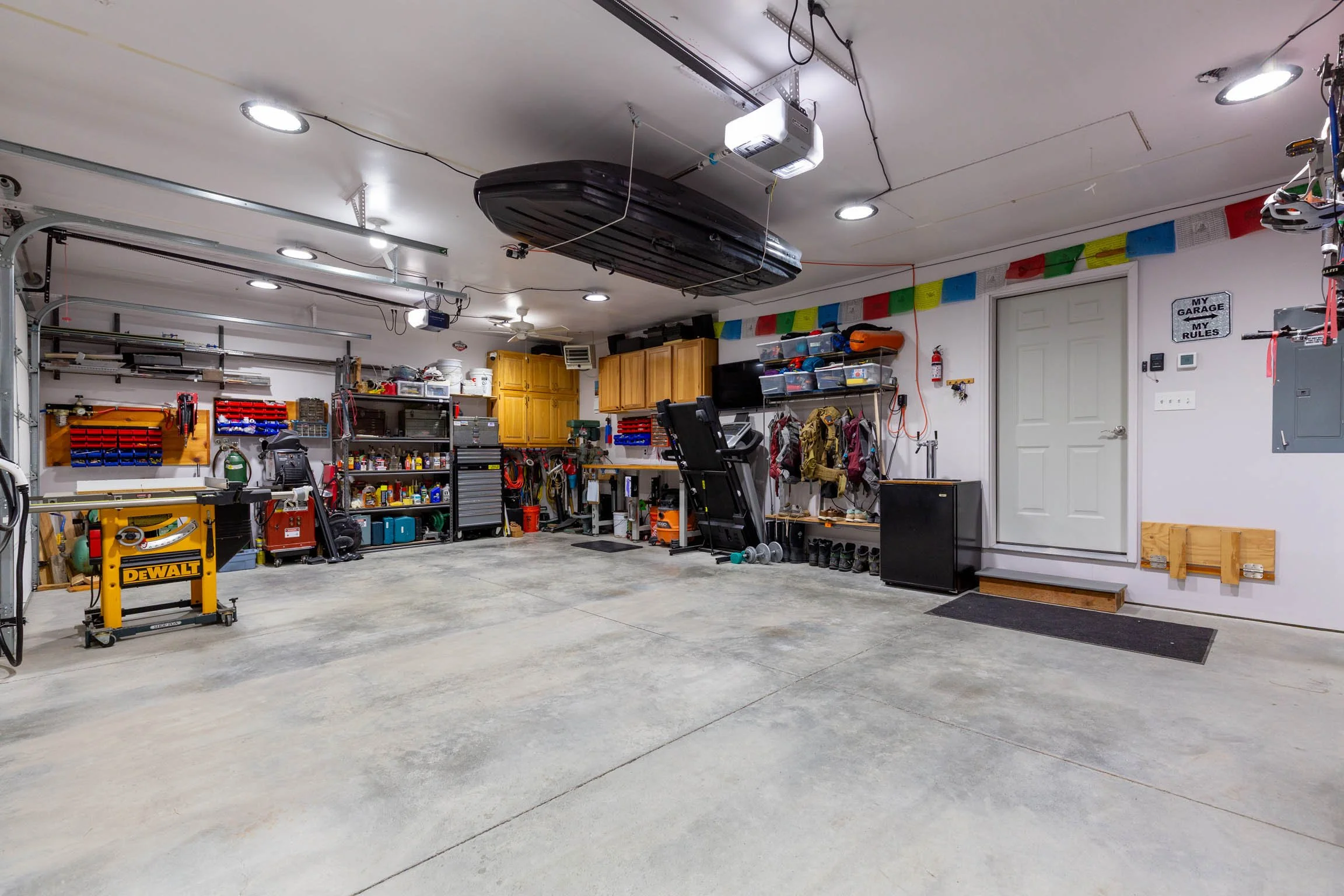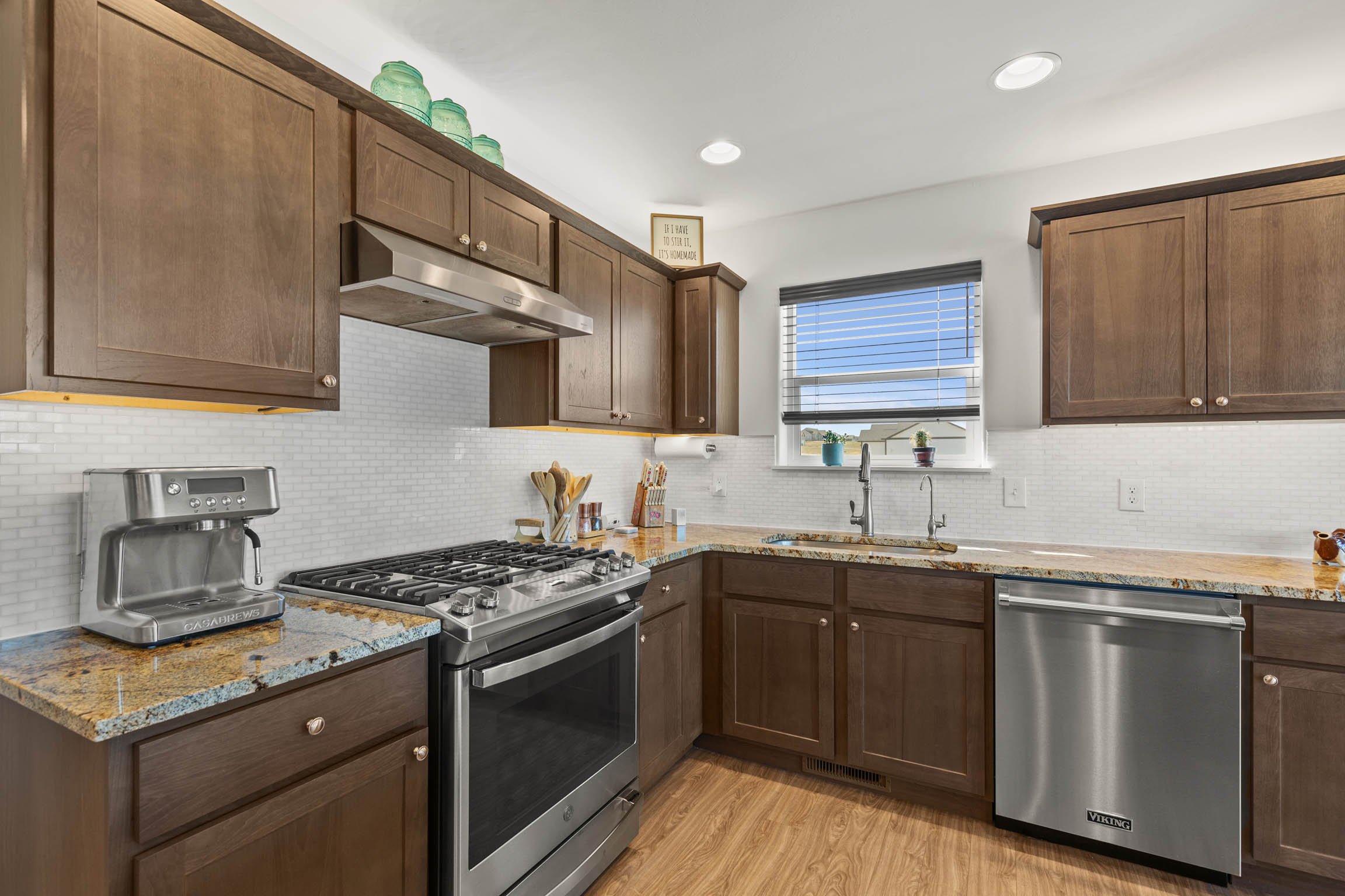 Inside, the home offers a clean, cohesive feel with durable luxury vinyl flooring throughout. The kitchen is both refined and functional, featuring granite countertops, stainless steel appliances, a gas range with hood, and under-cabinet lighting above and below. In-ceiling speakers add a subtle, elevated touch for everyday living or entertaining. The laundry room includes a utility sink, and light-blocking and wood blinds are already in place, saving a new owner both time and expense. A reverse osmosis system and water softener further enhance comfort and livability. A rare and highly functional feature is the expansive crawl space—approximately 1,900 sq ft with 6-foot ceilings—accessed by an elevator. It offers exceptional, easy-access storage that sets this home apart. The fully finished 3-car garage is insulated and heated, complete with custom-built shelving and two 50-amp circuits, providing flexibility for projects, equipment, or electric vehicle needs.