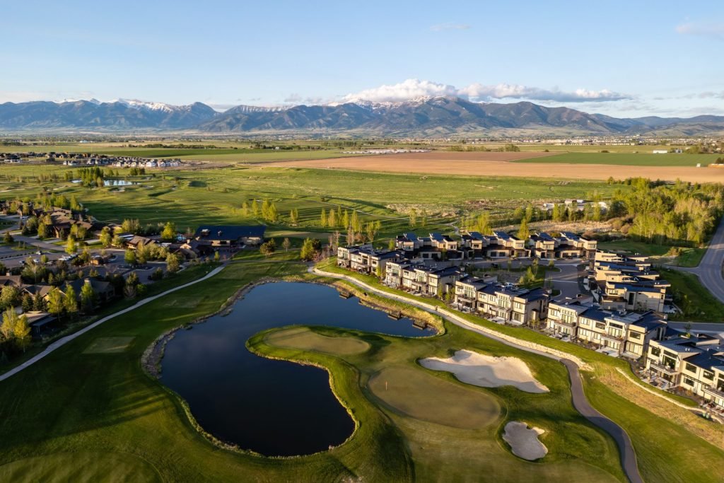This luxurious, main-level Black Bull Villa condo offers low-maintenance living with stunning mountain views and private golf and social club access – memberships are required for social club access and golf access but are not required as a part of condo ownership. Located across from the putting green, this unit features stunning Bridger Mountain vistas. High-end finishes and ground floor convenience welcome you home. Enjoy entertaining in the spacious great room featuring a chef’s kitchen with a large dining island, high end KitchenAid appliances with a 6-burner gas range and exterior vented hood, quartz counters, tile backsplash, under cabinet lighting, large pantry. Enjoy cozy evenings around the euro-style stacked stone surround gas fireplace or warm summer evenings with the double sliders open to the covered patio. Two private, primary suites are located to either side of the great room – each features a large walk-in closet with built in closet system, tile bath (one tub, one shower), and expansive views to the Bridger Mountains. Laundry area off great room – washer/dryer convey. Central A/C keeps the unit comfortable all summer long. In winter the HOA shovels and plows to the front doorstep – imagine the convenience – perfect for those wanting to lock and leave! A one-car, attached, extra deep, heated garage with a frosted glass panel door is perfect for storing all your Montana lifestyle equipment. Located just a stone’s throw from the putting green, Black Bull’s private restaurant, pool, gym and Hole #1 of the Tom Weiskopf designed 18-hole championship golf course (membership required – waitlist spots available). In summer, club members enjoy miles of walking trails and in winter a classic and skate ski track is groomed around the golf course – ski and recreate right from your door! Super convenient to amenities, minutes to shopping, grocery stores, restaurants, medical, services and amenities. 15 minutes to historic downtown Bozeman, 30 minutes to Bridger Bowl. 10 minutes to blue ribbon fly-fishing and river recreation. 55 minutes to Big Sky. Don’t miss the 360 VR Matterport Tour!