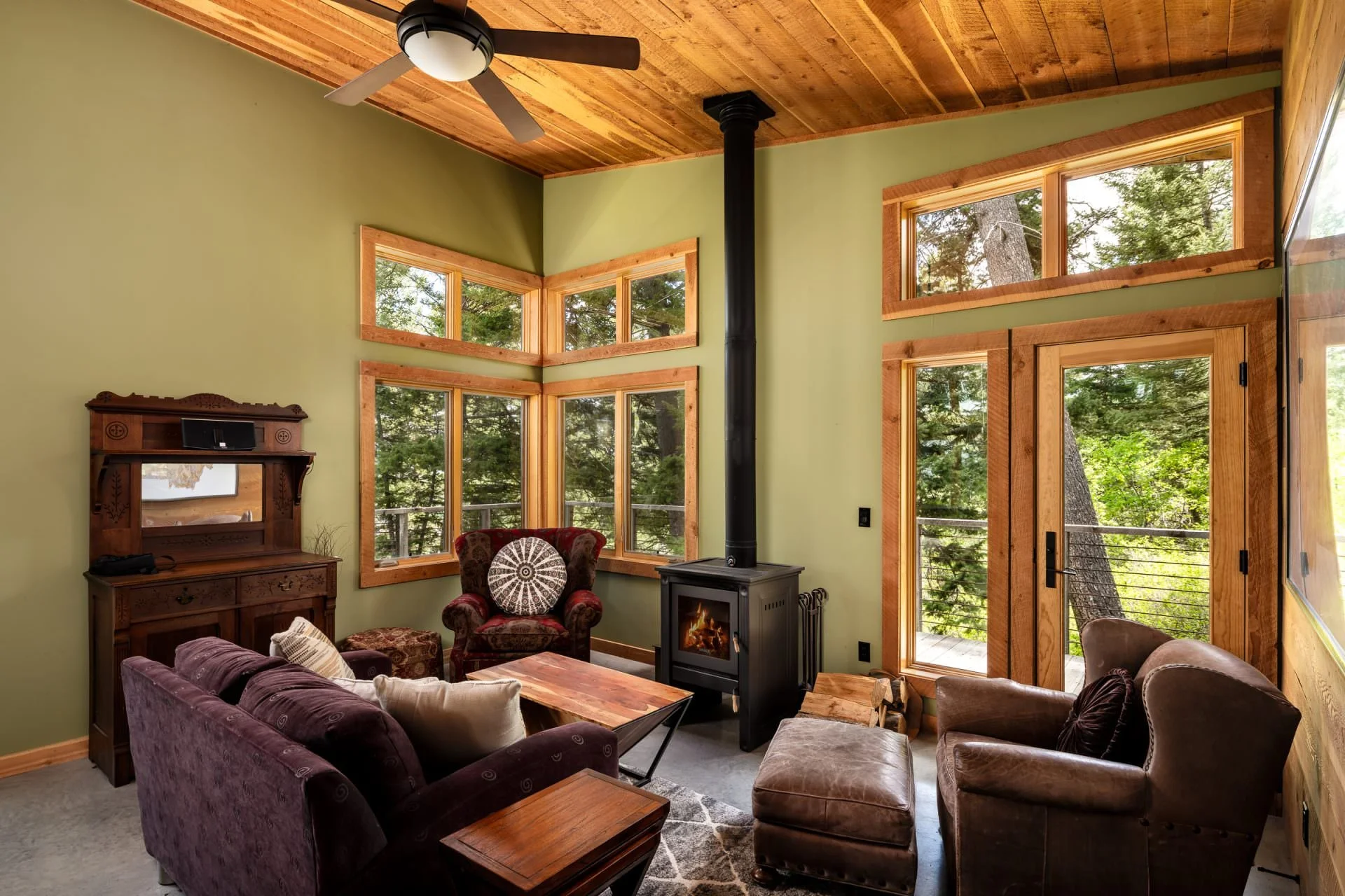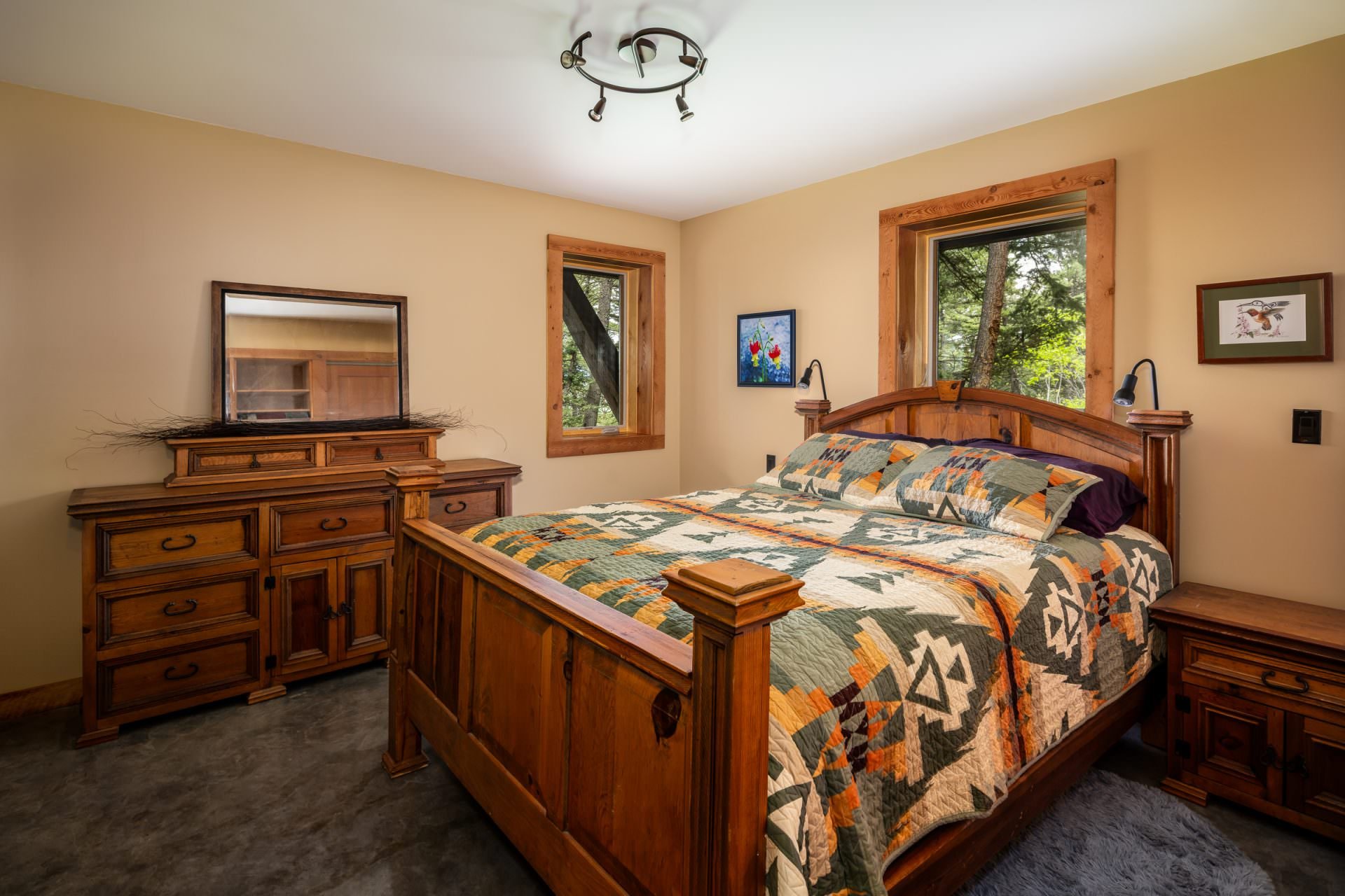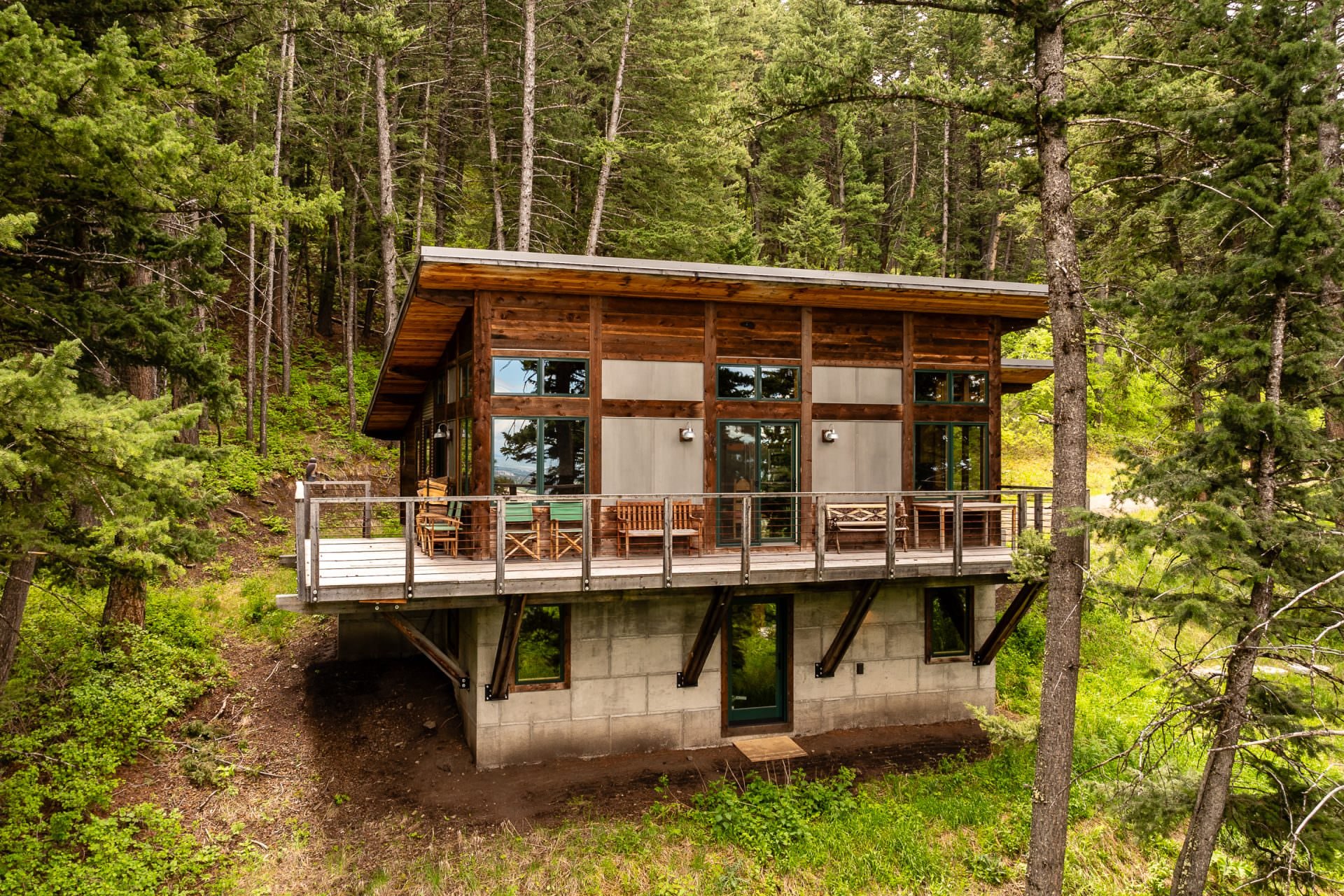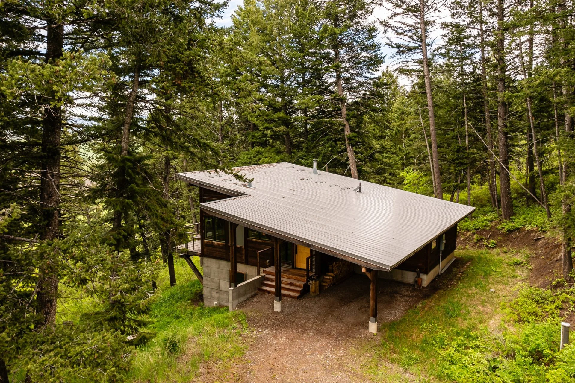 Escape to your own mountain sanctuary! Nestled on 5 acres at the mouth of Leverich Canyon, this spectacularly sited, single owner OSM built home features gated access and seclusion, yet enjoys the convenience of being just 15 minutes from MSU and the amenities of Bozeman. Sold furnished and turn-key, the home is surrounded by the tranquil mountain forest with abundant wildlife viewing and recreation right outside door. Located on the hillside, the house features double height JeldWen windows on the main living level with views towards the Bridger Mountains, framed by pine forest. Natural rough sawn wood exterior with metal roof and cedar deck blends the structure into the surrounding mountain setting. Wrap around deck on the main level allows for the perfect summer entertaining space and location for outdoor relaxation. The welcoming entry features a wall of rough sawn wood, in floor concrete radiant flooring. The vaulted great room with wood ceiling features excellent natural light, beautiful views to the forest and flexibility of furniture layout. The chef’s kitchen features paperstone counters, alder cabinetry, upgraded stainless steel appliances, dining bar and tons of cabinetry storage and counter space. A Bosca wood stove keeps the space cozy in winter. Natural wood doors, wood built-ins and wood trim can be found throughout the home. A primary suite on main features a rich wood ceiling, a restful reading nook, walk in closet and full bath with twin sinks and extra deep tub. Downstairs, the daylight walk-out lower level features a second bedroom with corner windows, a second living room which could be used as a 3rd bedroom and a full tile bath with euro glass door and modern vanity. Laundry room with Speed Queen appliances and utility sink accesses a conditioned additional storage area. The lot is natural forest – making for easy maintenance of the land – get out and enjoy your summer without having to mow the lawn! 3-bedroom septic allows for expansion. Covered carport and outside wood storage area. No known covenants – Hyalite RR-5 zoning. Travel on public easement right from the door to public lands for hunting, hiking, mountain biking, cross country skiing and other recreation. Just 15 minutes to shopping, dining, medical and amenities in Bozeman – 40 minutes to Bridger Bowl and Crosscut. 1 hour to Big Sky Resort. 30 minutes to Yellowstone International Airport. 25 minutes to blue ribbon fly-fishing.