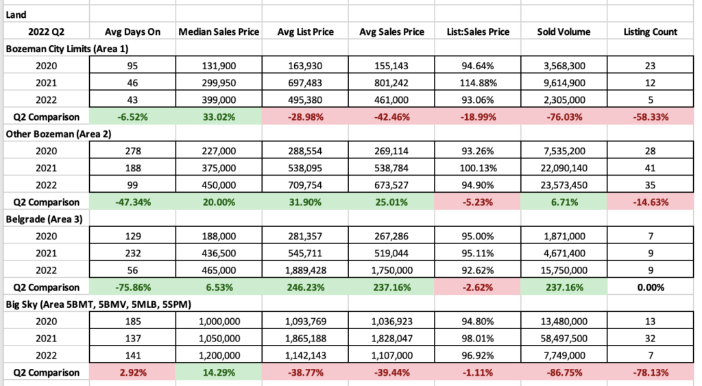 As of 7/22/22 Big Sky MLS